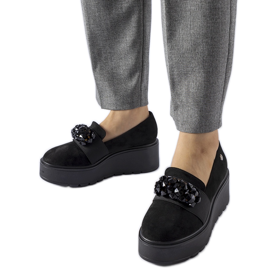 Os sapatos pretos GD-FL770A são uma escolha prática e elegante para as mulheres que procuram sapatos simples, mas eficazes, todos os dias. A combinação de textura de camurça, strass sutis e uma plataforma confortável os torna um ótimo complemento para as estilizações da primavera e do verão.