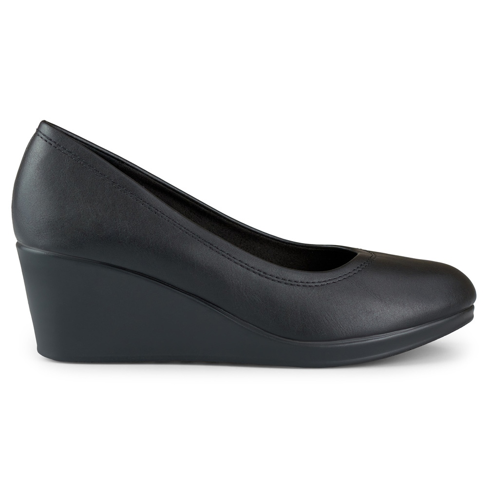 Sapatos de cunha pretos em couro ecológico - elegância e conforto para todas as ocasiões