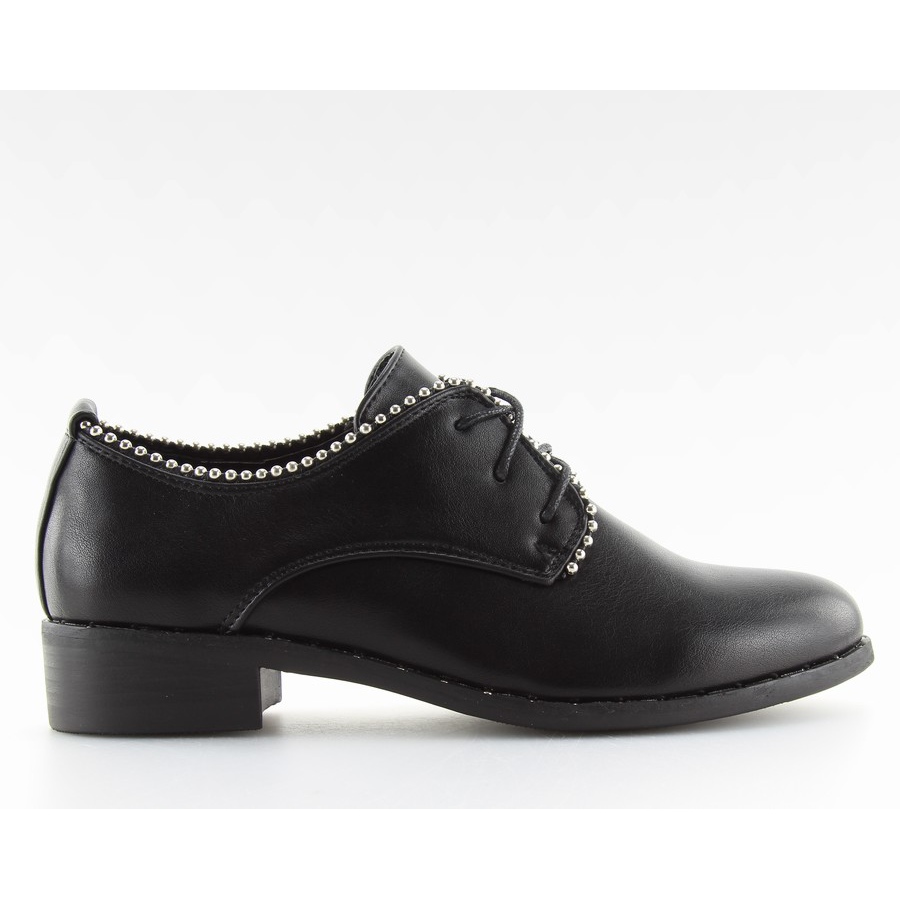 Sapatos femininos com cadarço - mocassins pretos com toque de rock