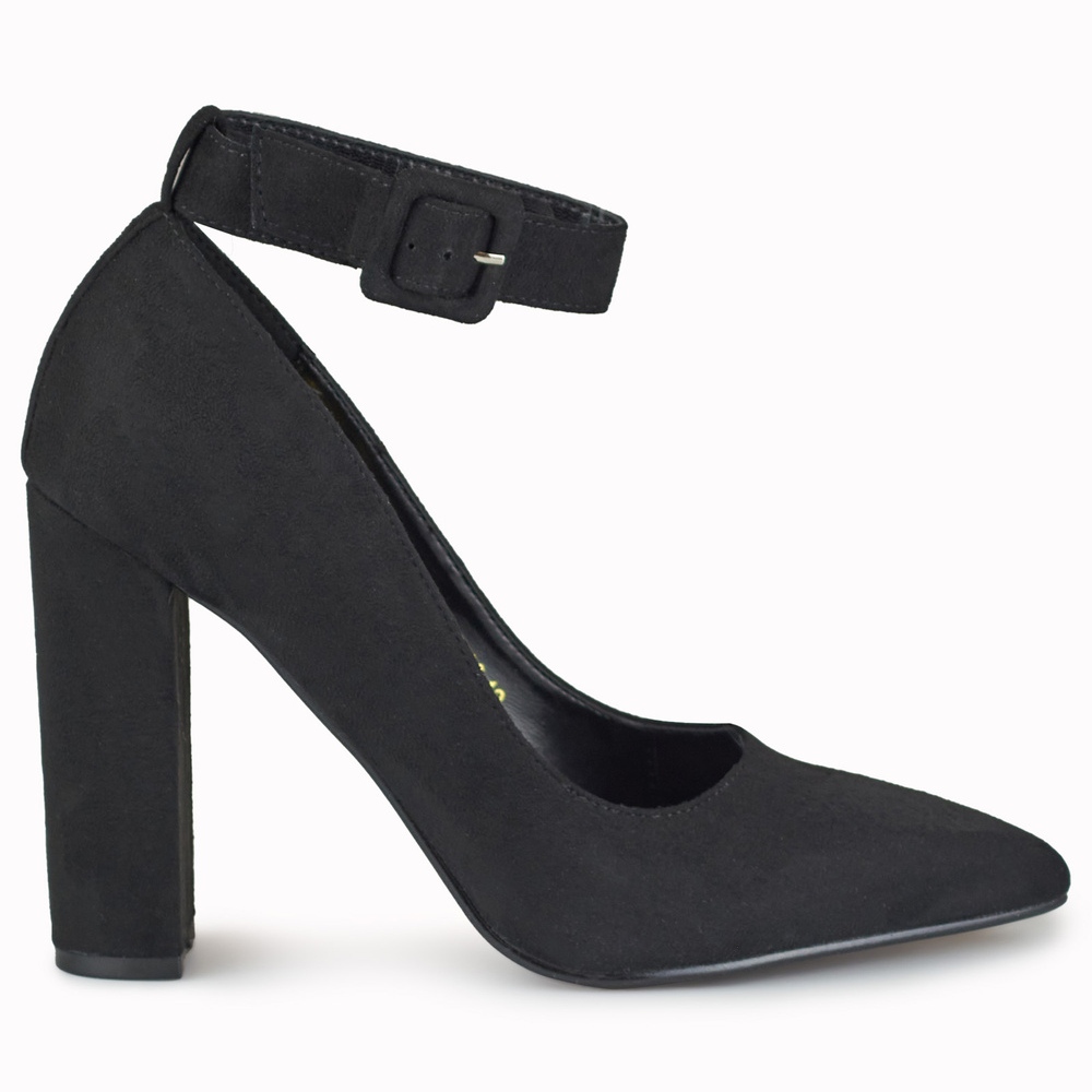 Os scarpins femininos pretos com fecho no tornozelo são a quintessência da elegância e do estilo requintado, que sem dúvida chamam a atenção. Criados por uma marca especializada em calçado feminino, estes sapatos são a combinação perfeita entre moda e conforto. Confeccionados em camurça ecológica de alta qualidade, garantem não só uma aparência impecável, mas também uma consciência ecológica.