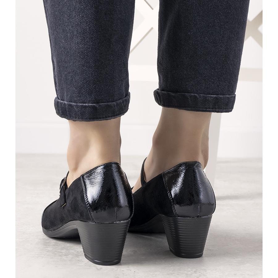 Descubra elegância e conforto com os sapatos pretos de salto alto do modelo Dessert. Estes sapatos refinados, feitos de uma combinação de couro ecológico camurça e couro ecológico envernizado, combinam perfeitamente estilo com acabamento de alta qualidade.