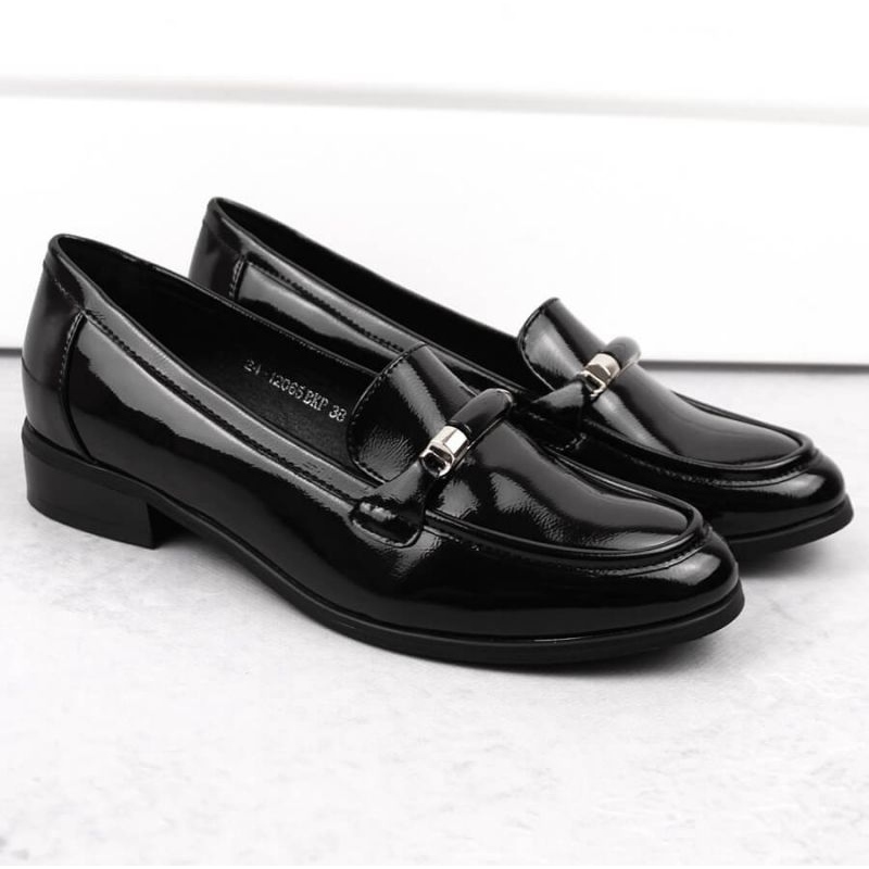 A superfície elegante e envernizada dos sapatos os torna perfeitamente misturados com várias roupas - casual e mais elegante. As cores pretas universais farão você colocá -las facilmente em seu guarda -roupa.