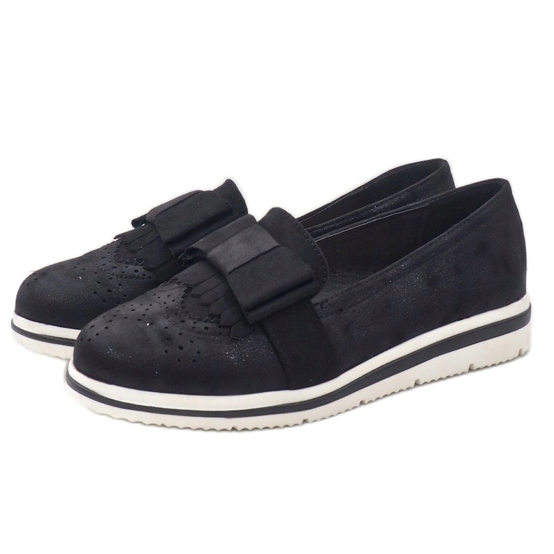 Uma vantagem adicional desses sapatos é o laço, que lhes confere um charme feminino. Os sapatos estão disponíveis na clássica cor preta, o que os faz combinar perfeitamente com vários conjuntos. A sola em material sintético e a palmilha ecológica garantem durabilidade e facilidade de cuidado.