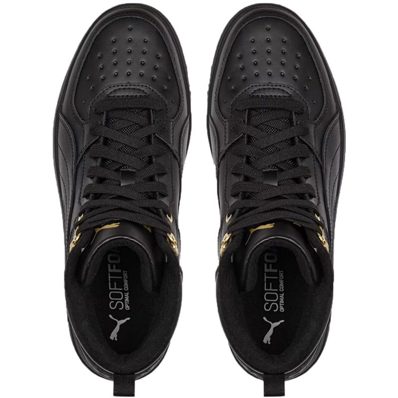 PUMA REBONDE A RUCDED 387592 01 SAPATOS - Tênis altos femininos em uma versão negra elegante com detalhes em ouro sutis. A combinação de estilo urbano e conforto os faz funcionar diariamente e durante a atividade no estilo de estilo de vida.