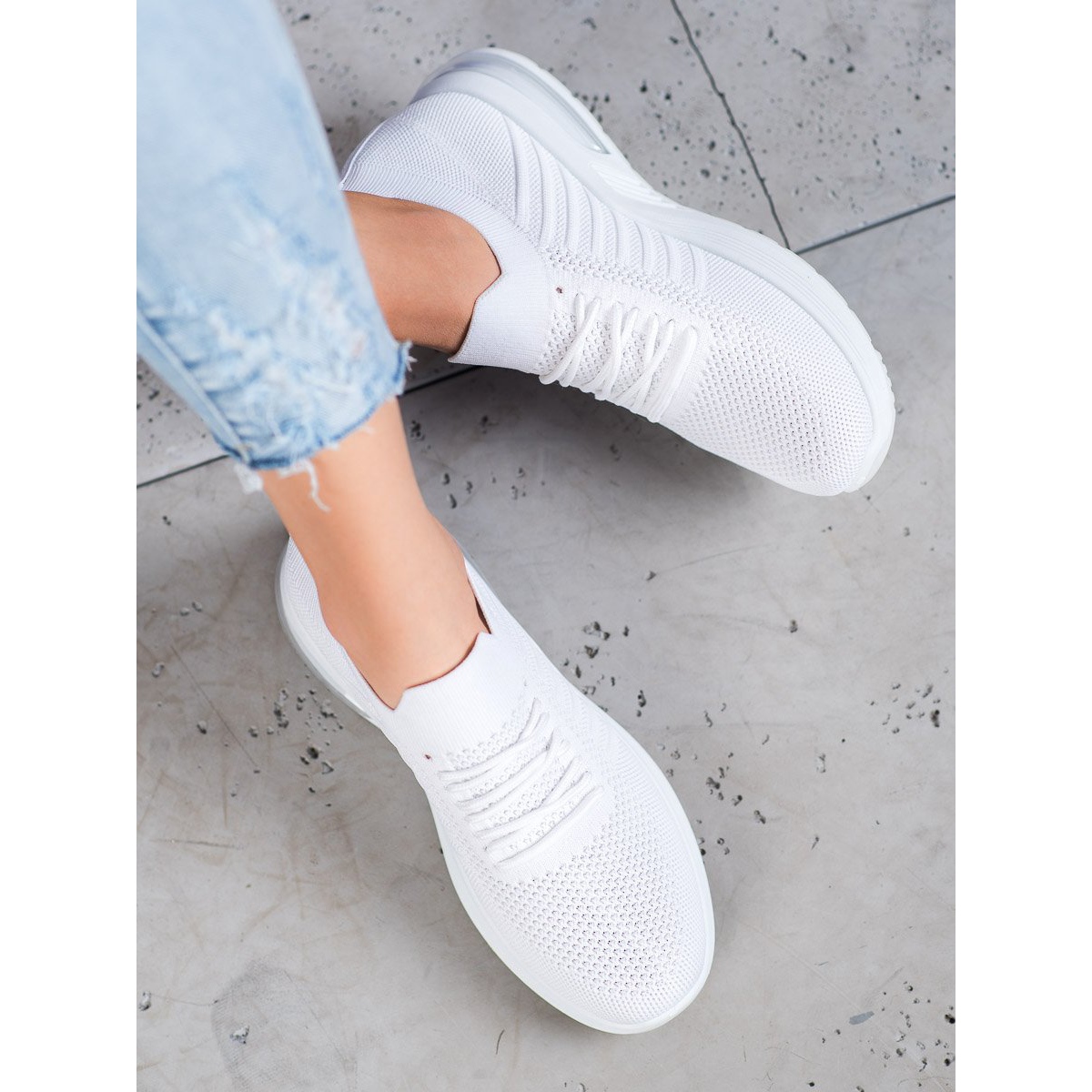 Detalhes: SHELOVET Sapatos têxteis brancos na plataforma