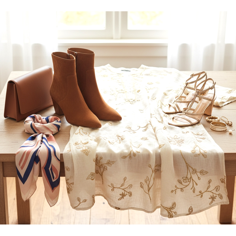 Vale lembrar que a túnica em si é muito expressiva, por isso os sapatos devem complementá-la e não competir com ela. O segredo é encontrar o equilíbrio entre elegância e praticidade.