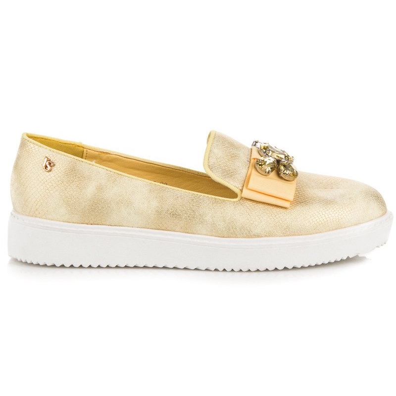 Os sapatos VICES amarelos são um acessório extremamente estiloso que se adapta perfeitamente às tendências de primavera e verão. Confeccionados em couro ecológico de alta qualidade, chamam a atenção com um interessante motivo de pele de cobra, que lhes confere originalidade e caráter. Os cristais que decoram a frente dos sapatos brilham lindamente aos raios solares, conferindo um brilho único ao todo.