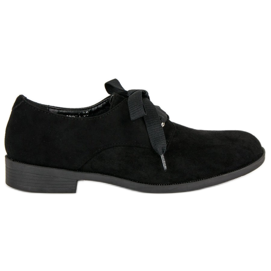 Os sapatos pretos com atacadores VICES são a escolha perfeita para todas as mulheres que valorizam a elegância e o conforto do dia a dia. Estes sapatos universais, confeccionados em couro ecológico de alta qualidade, distinguem-se por um design simples mas eficaz que se adapta perfeitamente ao estilo casual.