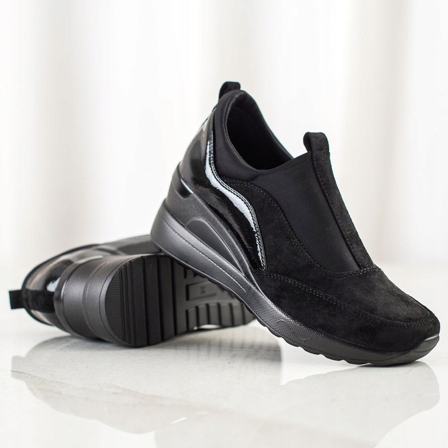 Descubra um estilo original com os sapatos slip-on VINCEZA na elegante cor preta. Estes calçados esportivos femininos combinam design moderno e conforto, tornando-os a escolha perfeita para o uso diário. Confeccionados em couro camurça ecológico na frente e decorados com imitação de couro envernizado nas costas, esses sapatos garantem um look perfeito que chama a atenção.