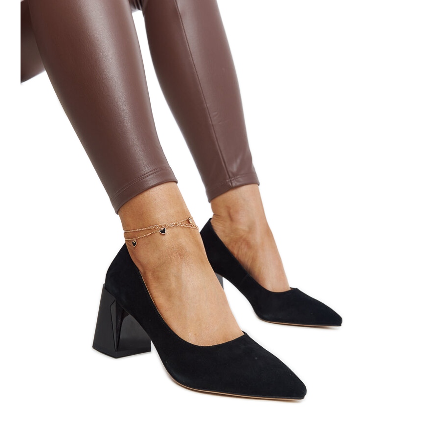 As bombas são feitas de couro de camurça natural de alta qualidade, que se encaixa perfeitamente nas últimas tendências. As cores pretas clássicas fazem com que combinem com muitos estilos, de vestidos elegantes a conjuntos casuais com jeans. Além disso, a inserção de couro garante conforto o dia todo, e uma sola de plástico sólido garante a durabilidade e boa adesão.
