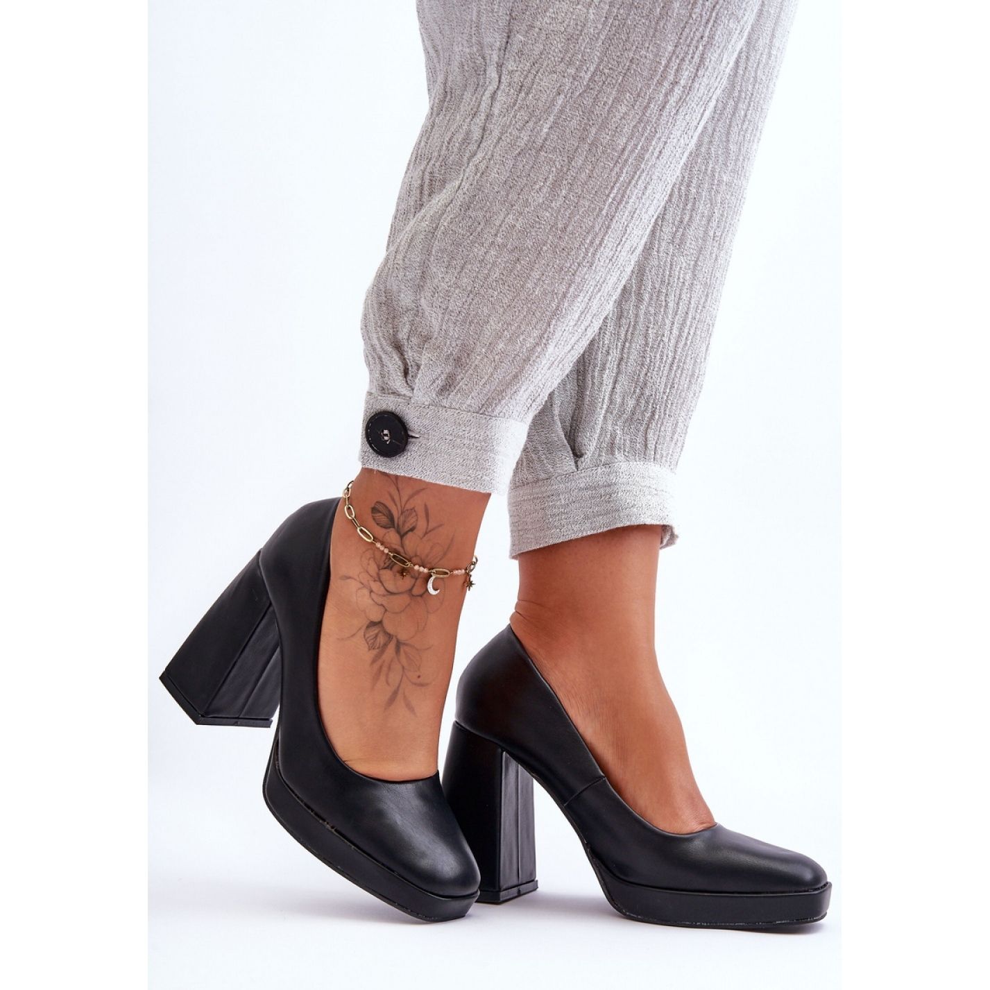 Um bloco estável e mais alto, com uma altura de 10,5 cm e uma plataforma delicada com uma altura de 2 cm, proporcionam conforto sem paralelo, o que os torna uma ótima solução para o trabalho e várias saídas, como eventos ou reuniões importantes. O nariz quadrado da moda lhes dá um caráter moderno, e o salto rígido os faz se adaptar perfeitamente ao pé.