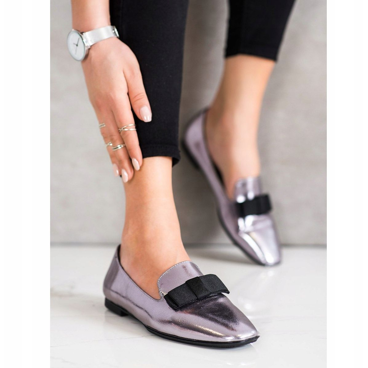 Um elemento característico deste modelo é um laço decorativo feito de uma larga fita preta, que confere um charme único ao calçado. Biqueiras bem arredondadas e um calcanhar macio integrado garantem não apenas uma aparência estética, mas também conforto de uso. Graças ao fecho slip-on, colocá-los e tirá-los é um puro prazer.