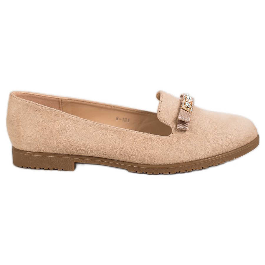 A sola em material sintético é lisa, o que melhora a aderência e o conforto ao caminhar. Um detalhe interessante é um laço decorativo com cristais sutis que conferem elegância ao calçado. Devido à falta de salto, os senhores são perfeitos para uso prolongado e atividades cotidianas.