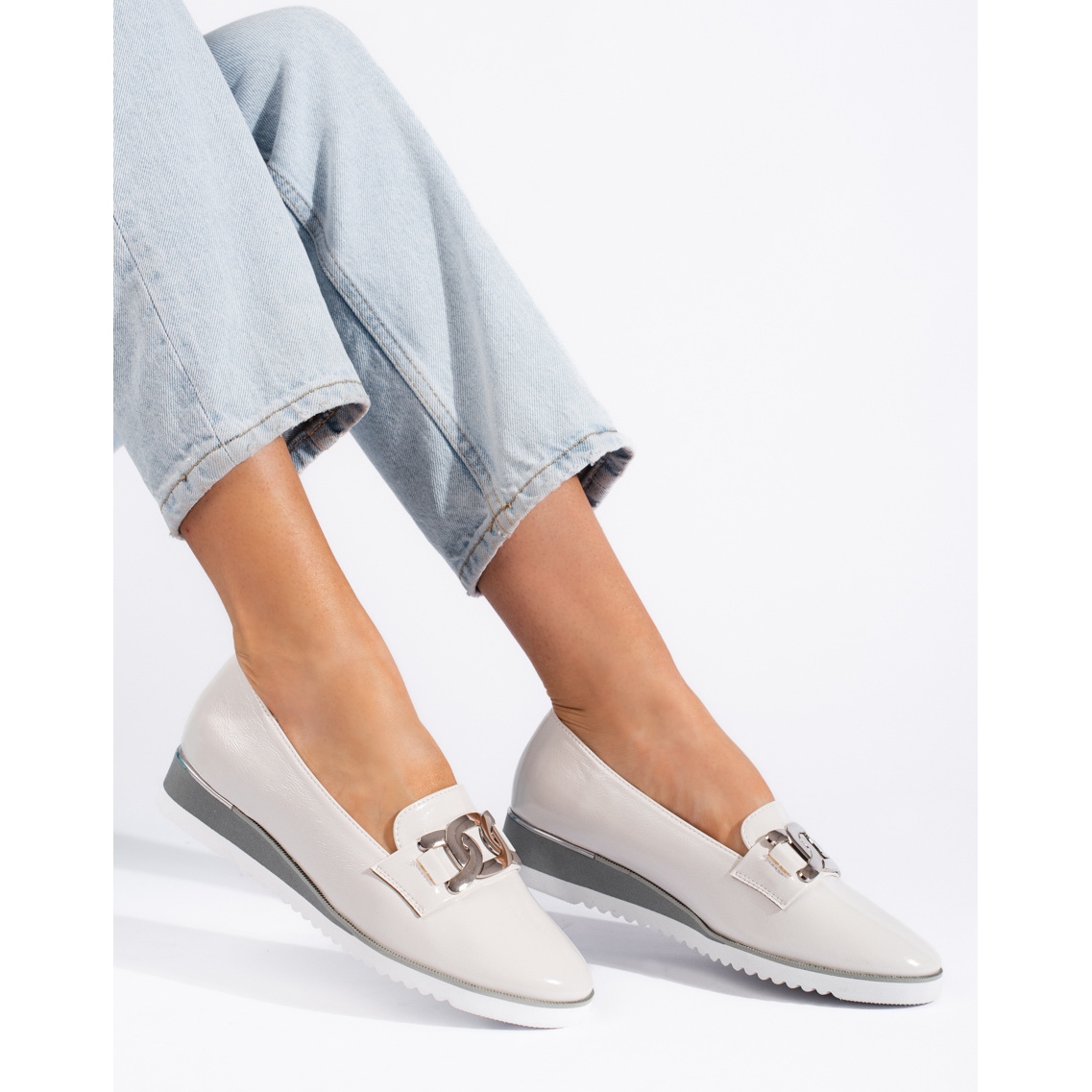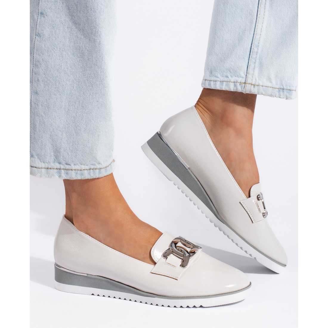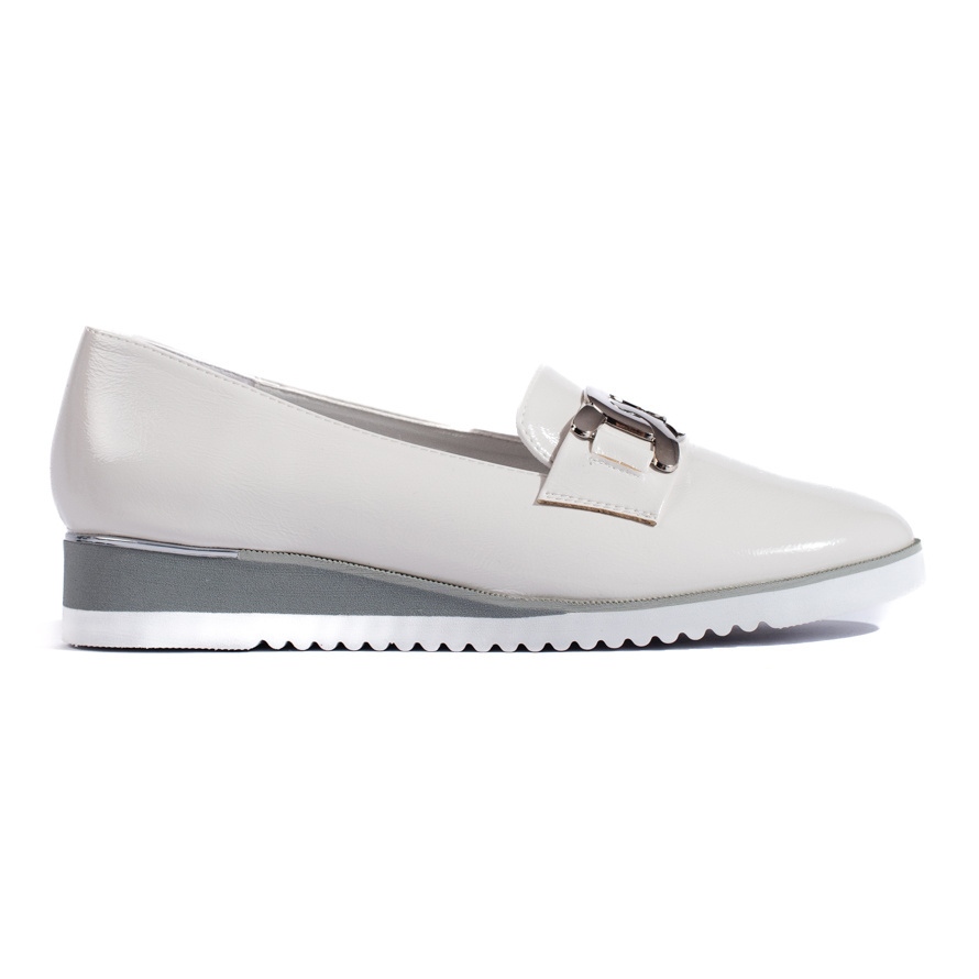 Graças à plataforma de 3 cm de alta, esses sapatos aumentam opticamente as pernas, e o efeito do envernizador faz com que os senhores pareçam extremamente elegantes. Uma vantagem adicional é a corrente decorativa, que adiciona um personagem expressivo aos sapatos.