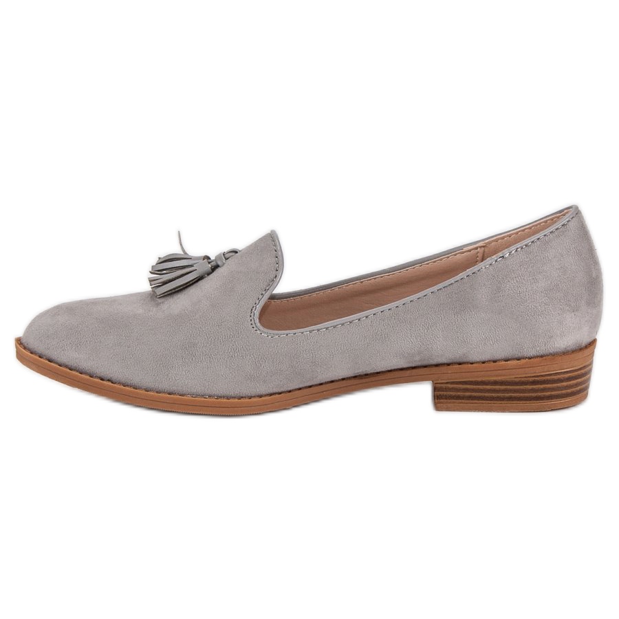 Os mocassins caracterizam-se não só pela aparência estética, mas também pelo acabamento cuidadoso - a casca externa em couro camurça ecológico e o interior com acabamento em couro ecológico tornam o calçado confortável para usar o dia todo. Uma vantagem adicional são as franjas elegantes que lhes conferem um charme único.