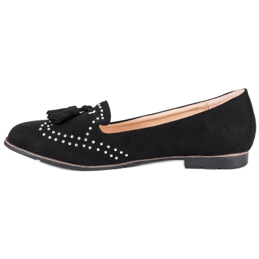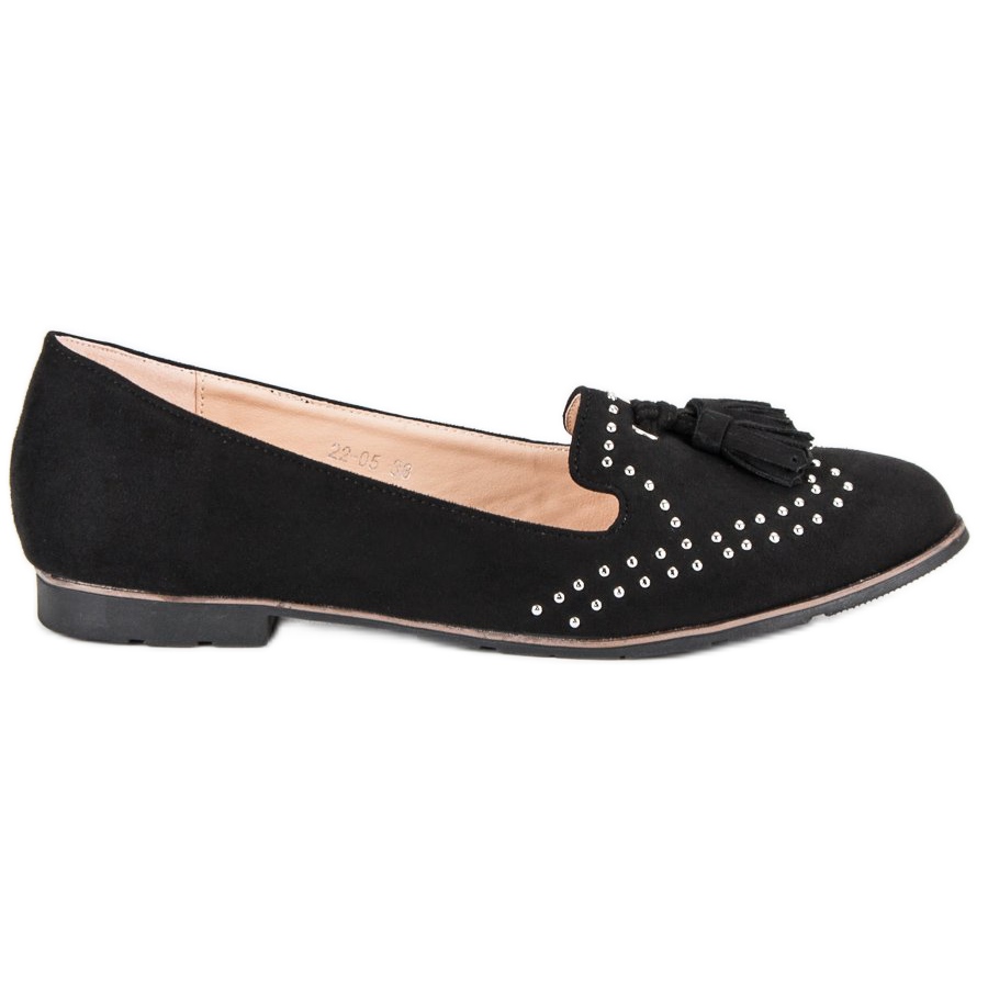 Um elemento característico destes senhores são as franjas decorativas e as aplicações de strass, que lhes conferem um estilo único. O interior do calçado é forrado com couro ecológico, o que aumenta o conforto de uso. Os Black Super Me Lords são a escolha perfeita não só para os dias de primavera e verão, mas também funcionam bem em um cooler, o que os torna um complemento universal no guarda-roupa de qualquer mulher.