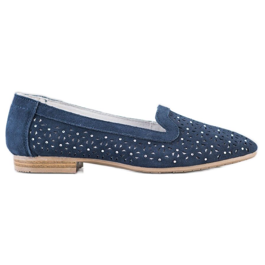 Descubra estilo e elegância extraordinários com os senhores de couro azul marinho da marca Filippo. Estes sapatos únicos, confeccionados em couro natural de alta qualidade, encantam não só pelo seu design único, mas também pelo conforto de uso. Decorados com vários strass, os lords são um complemento perfeito para vários looks - do casual ao mais elegante.