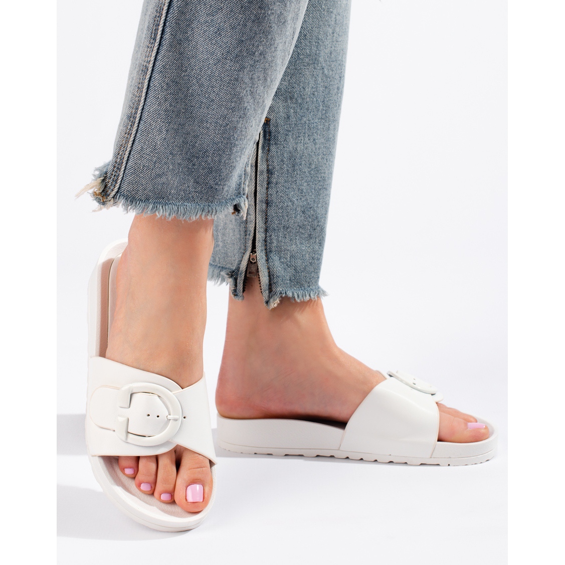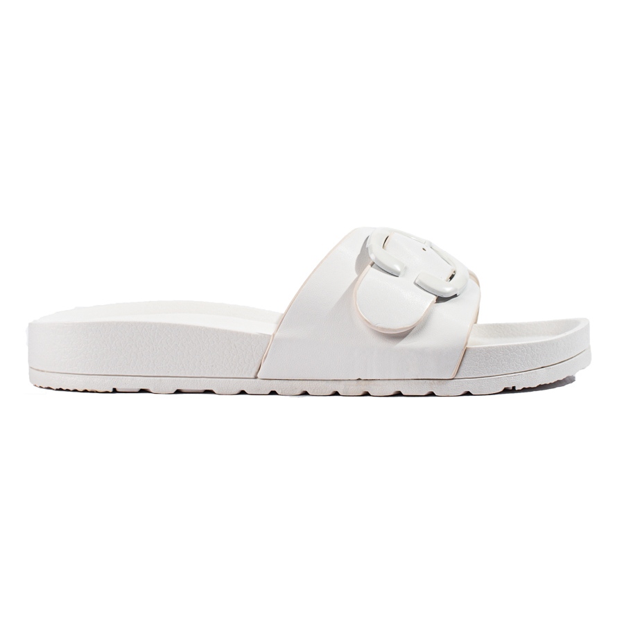 Os chinelos com fivela Shelovet brancos são a escolha perfeita para os dias de primavera e verão. Criado para todas as mulheres que valorizam conforto e estilo no estilo do dia a dia. A categoria casual torna-os uma combinação perfeita tanto para vestidos de verão como para calças largas.