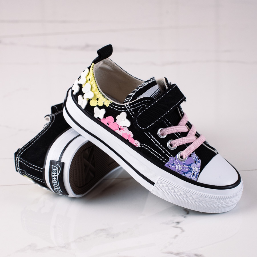 Os tênis baixos infantis Shelovet são a escolha perfeita para os pequenos exploradores! Na cor preta, decorada com flores multicoloridas, combinam um estilo esportivo com um caráter alegre e casual. Perfeito para ocasiões do dia a dia, esses tênis apresentam biqueira completa e calcanhar macio integrado para conforto e estabilidade durante o uso.