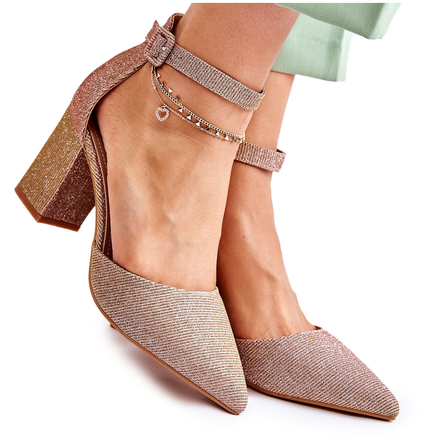 Detalhes: WS1 Shiny Pumps On A Bar Ouro escuro Amira dourado