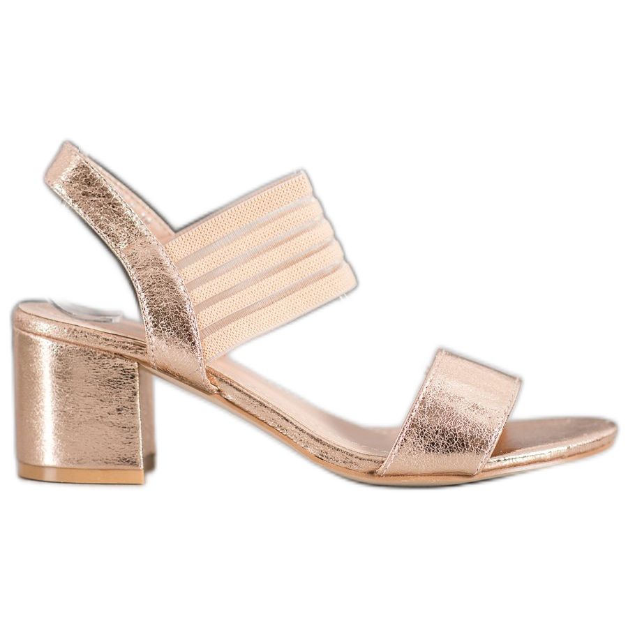 Graças aos materiais ecológicos com que são feitos (imitação de couro e couro ecológico), este modelo destaca-se não só pelo seu estilo, mas também pela sua abordagem consciente à moda. As sandálias estão disponíveis numa elegante cor dourada, que é universal e combina com vários estilos.