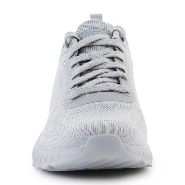 O Skechers Bobs Squad Chaos enfrenta sapatos em 117209 é uma ótima opção para homens que procuram uma combinação de estilo e conforto. Esses sapatos esportivos em uma sombra branca elegante e cinza -cinza se encaixam perfeitamente nas estilizações urbanas, dando -lhes um caráter moderno.