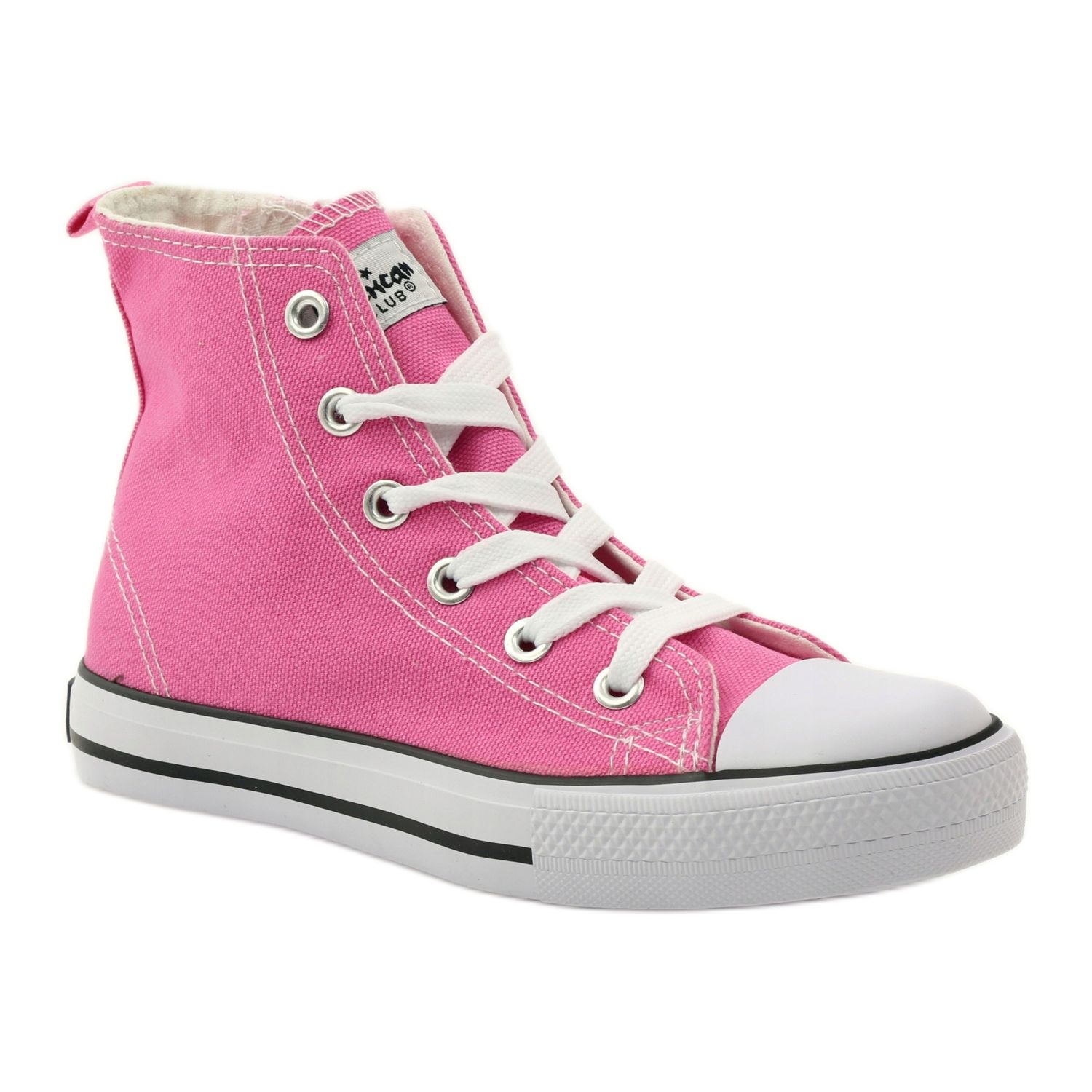 Tênis American Club estilosos e práticos para meninas, confeccionados em material têxtil de alta qualidade. A clássica cor rosa combinada com uma sola de borracha branca conferem um visual moderno e infantil - perfeito para a escola, o parque infantil e todos os dias.