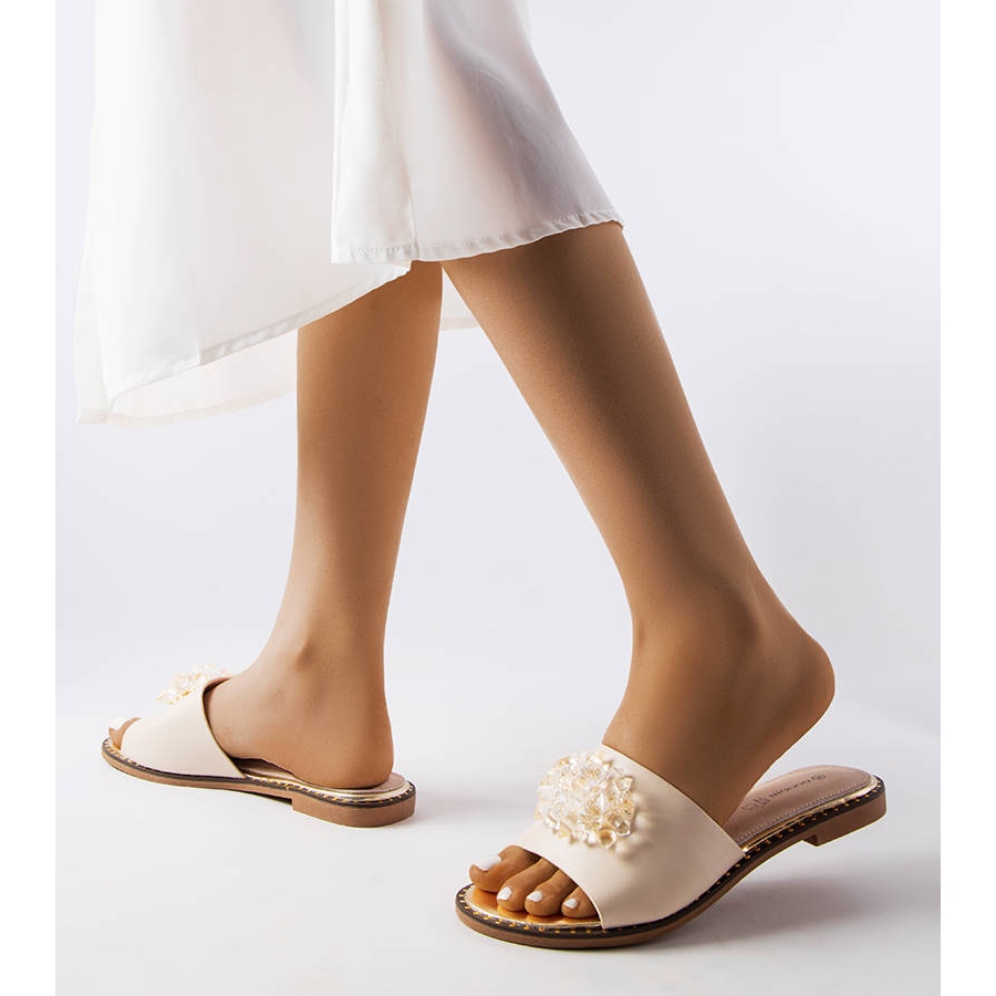 Os chinelos bege com cristais da Lowa são a escolha perfeita para mulheres que procuram elegância e conforto nos estilos de verão. O seu corte moderno e a sua cor bege subtil fazem com que combinem perfeitamente com uma variedade de looks, do casual ao mais elegante. Os chinelos confeccionados em couro natural de alta qualidade garantem conforto de uso e a biqueira redonda confere delicadeza.