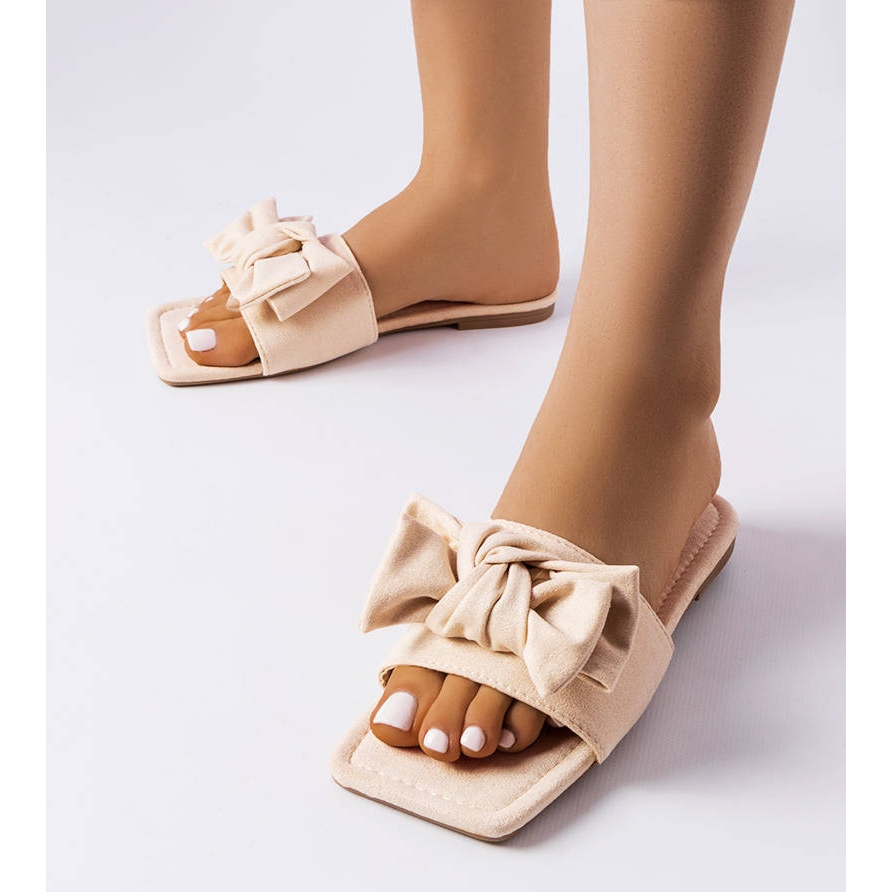 Detalhes: BM Sliders bege elegantes com um laço de Thériault