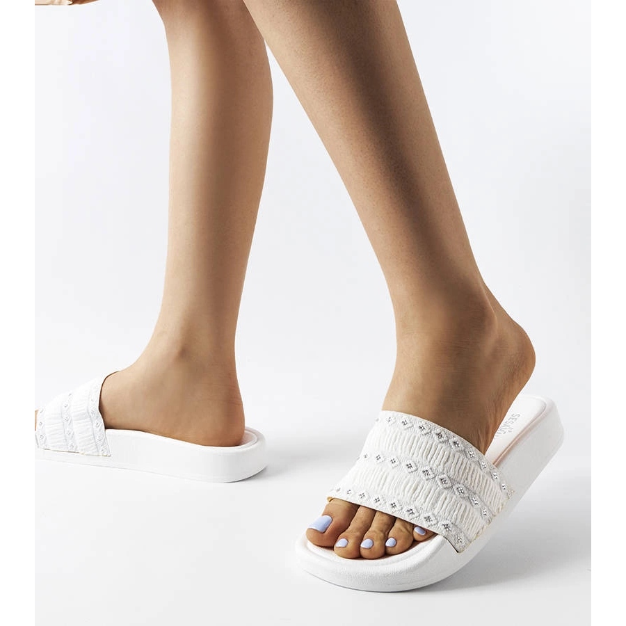 Apresentamos uma novidade na coleção de calçados de verão - chinelos brancos decorados com babados da marca Ernesta. Estes calçados incomuns são a quintessência da casualidade e elegância do verão. Dedicado a mulheres que valorizam a combinação de conforto e estilo único.