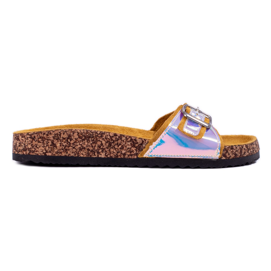 Detalhes: Sliders de cortiça holográfica amarela Shelovet amarelo