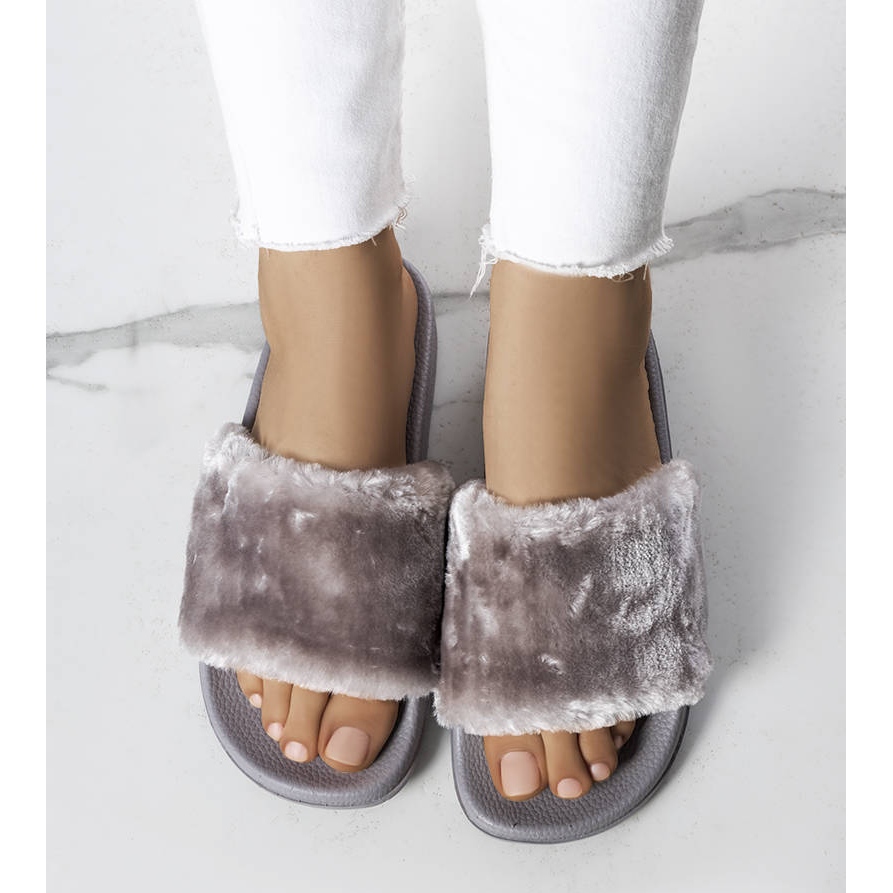 A clássica cor cinza dos chinelos combina com vários estilos, e a sola uniforme no mesmo tom cria um todo coerente. Um cinto largo coberto com imitação de pele acrescenta charme e um caráter único. Além disso, o leve perfil nos dedos faz com que os chinelos se ajustem perfeitamente ao formato do pé.
