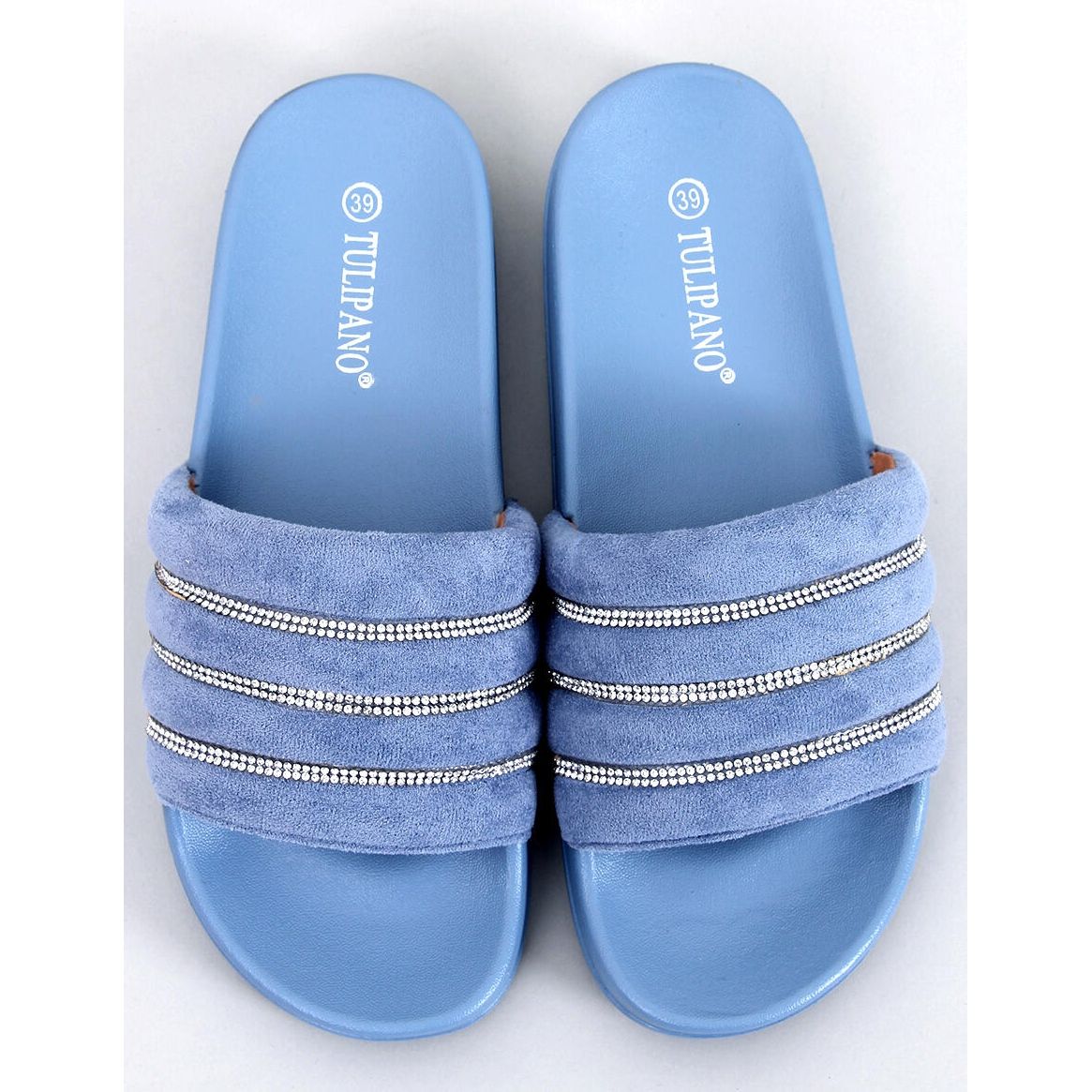 Apresentamos os chinelos femininos BM Lynne Blue, que encantam não só pela aparência, mas também pelo conforto incrível. Estes elegantes chinelos azuis com sola de borracha são a escolha perfeita para o uso diário. A sua aplicação subtil e brilhante de delicadas zircões confere-lhes um carácter único, tornando especial cada momento passado neles.