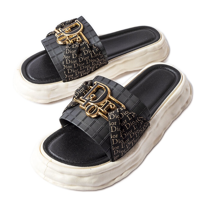 O seu design modernista em preto combina perfeitamente com vários estilos de verão e os detalhes dourados conferem-lhes um carácter exclusivo. Estes chinelos são a escolha perfeita tanto para os passeios na praia como na cidade, combinando perfeitamente com o estilo casual.