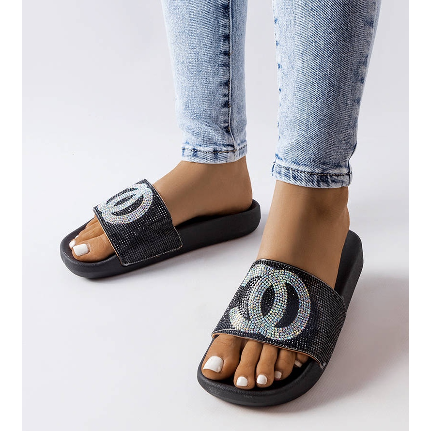 Os chinelos Glendale pretos decorados com strass são um must-have para os dias de verão, aliando estilo e conforto. Fabricados em couro ecológico de alta qualidade, estes chinelos distinguem-se pelo seu design elegante e detalhes atraentes em forma de zircões brilhantes que darão um toque de brilho a qualquer estilo.
