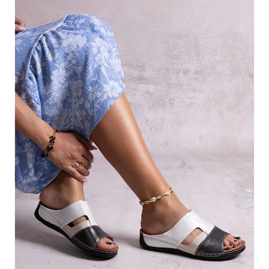 Descubra a elegância e o conforto no verão, graças às abas preto e branco com o brilho saminar. Esses chinelos elegantes, feitos de couro ecológico metálico, combinam o design moderno com o maior conforto. Suas solas de borracha oferecem excelente adesão, o que as torna perfeitas para caminhadas de verão e relaxamento na praia.