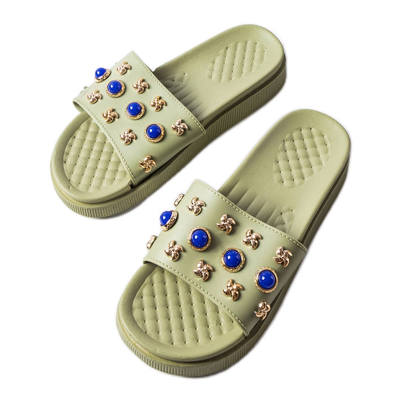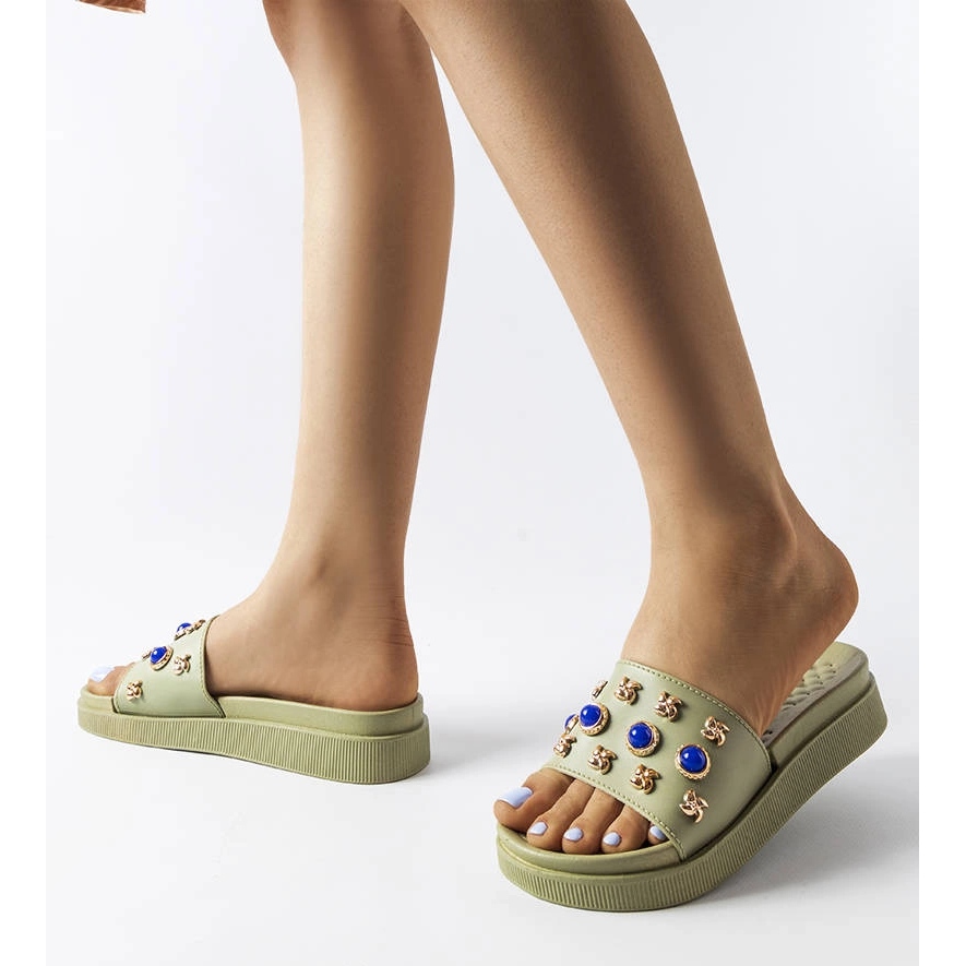 Slippers femininos levemente decorados e confortáveis todos os dias - perfeito para o verão. Feito de plástico de borracha, com jatos e pregos na moda que adicionam personagem a um corte simples. A forma universal e de baixo perfil e o aumento de 2 cm fazem com que funcionem nas estilizações diárias - desde caminhar pela cidade até relaxar pela água.
