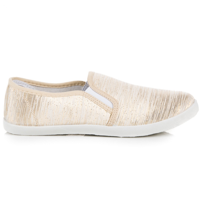 Aqui está a proposta perfeita para mulheres que buscam conforto e estilo - tênis slip-on com fio dourado na cor amarelo intenso da marca Inna. Estes calçados da moda distinguem-se não só pela sua tonalidade única, mas também por um toque subtil em forma de fio dourado, que lhes confere elegância e carácter.