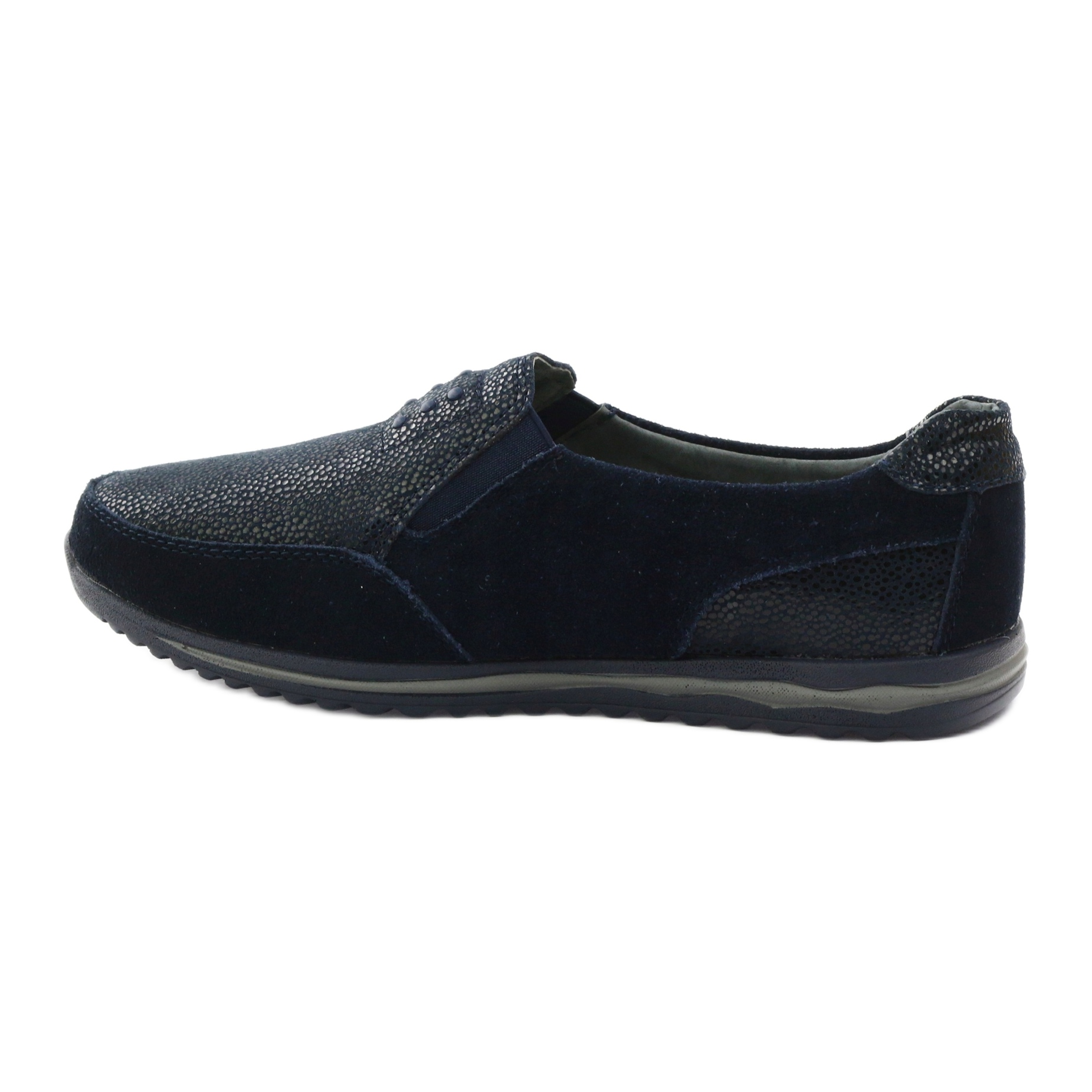 A cor azul marinho dos calçados é um clássico que se adapta perfeitamente a qualquer estilo, e seu caráter universal faz com que combinem tanto com looks esportivos quanto com looks casuais do dia a dia. O bico redondo adiciona sutileza e o fecho deslizante garante facilidade de uso.