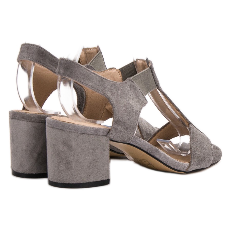 Descubra elegância e conforto com as sandálias de salto alto Evento na moderna cor cinza. Estes sapatos estilosos são perfeitos tanto para estilos do dia a dia quanto para estilos mais formais, adicionando elegância a qualquer roupa. Confeccionados em couro camurça ecológico de alta qualidade, caracterizam-se por um corte clássico que valoriza a figura feminina.