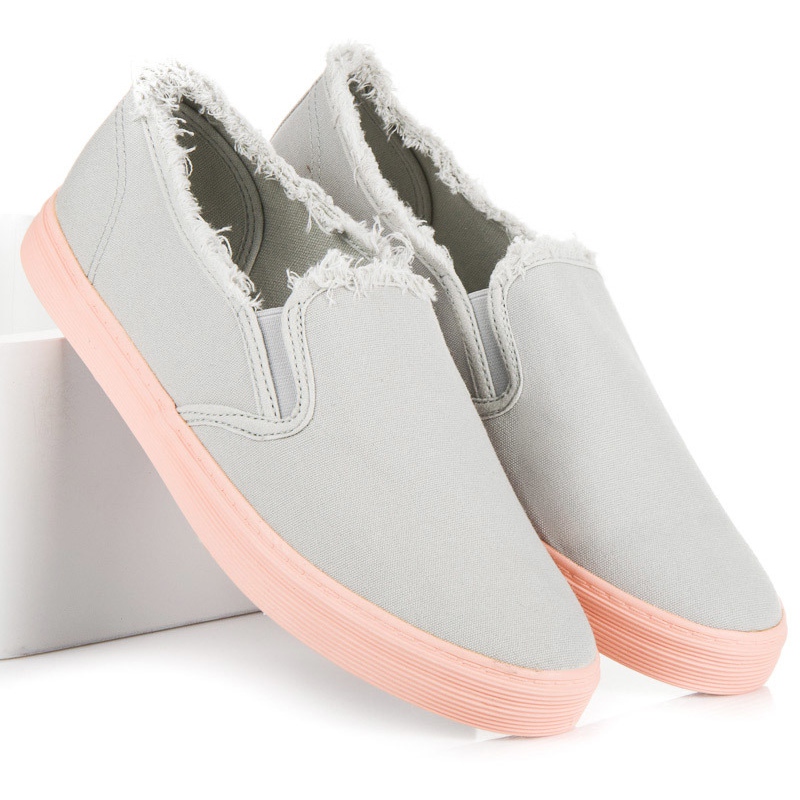 Os slipons distinguem-se por uma sola plana dotada de uma banda de rodagem na cor rosa da moda, que confere um carácter único a todo o calçado. A biqueira redonda e o salto macio embutido fazem com que o calçado se adapte perfeitamente ao pé, proporcionando suporte e conforto adequados.