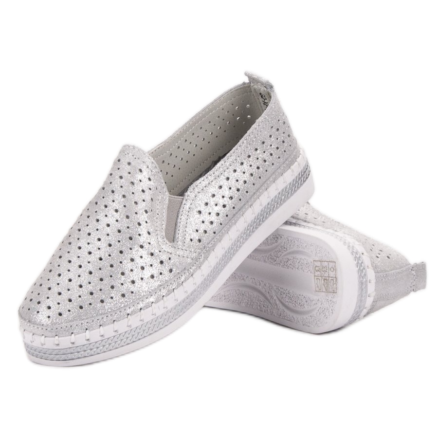 Os slip-ons de couro prateado da Goodin são a escolha perfeita para mulheres que desejam combinar conforto com estilo original. Esses calçados exclusivos chamam a atenção pela sua cor cinza exclusiva e acabamento cuidadoso, que garantem durabilidade e conforto de uso.
