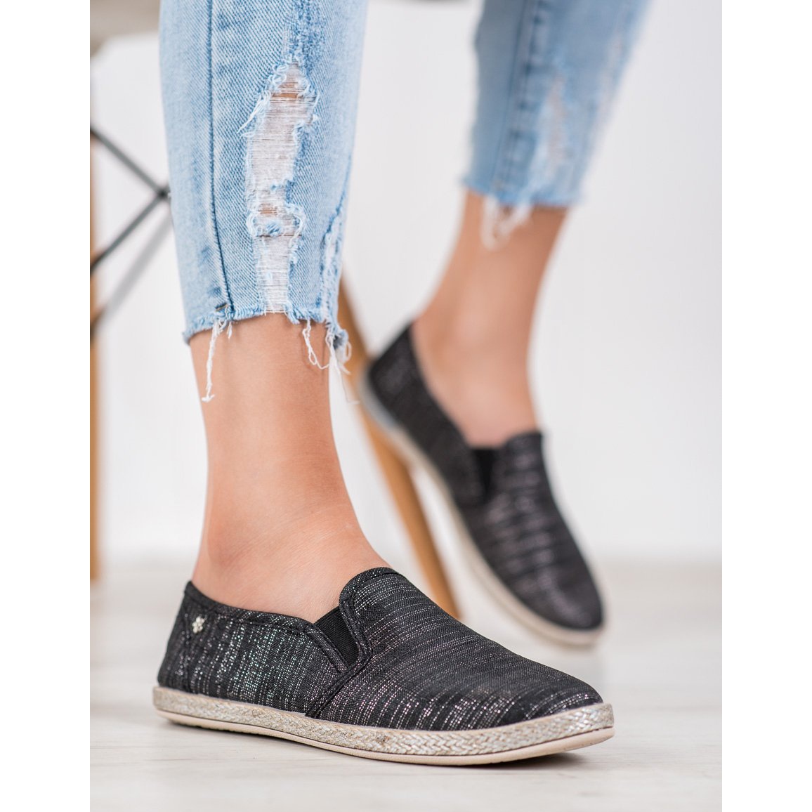 Detalhes: Balada Slipons de tecido leve preto