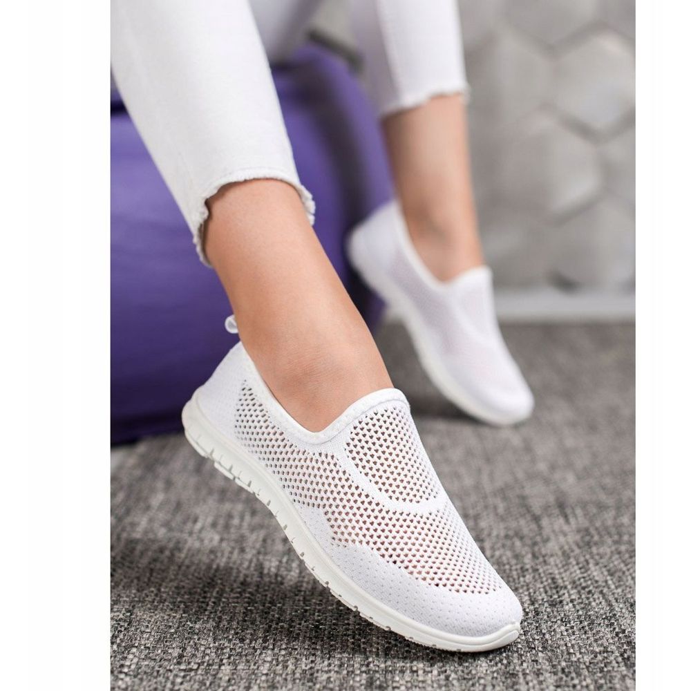 Estas sapatilhas brancas distinguem-se por um padrão vazado, que lhes confere leveza e as torna um complemento perfeito para estilos casuais e desportivos. Confeccionados em 100% tecido, tanto o material externo quanto o interno garantem conforto e são fáceis de manter o calçado limpo.