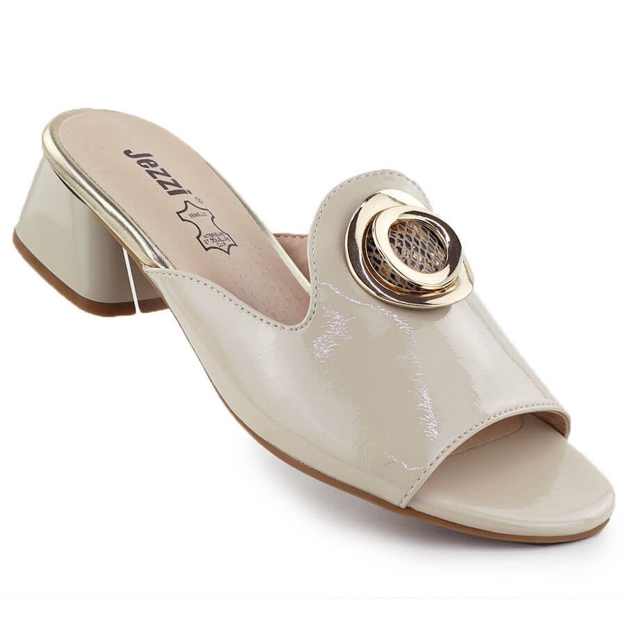 Detalhes: Slippers em um quarteirão com um ornamento envernizado bege jezzi 214
