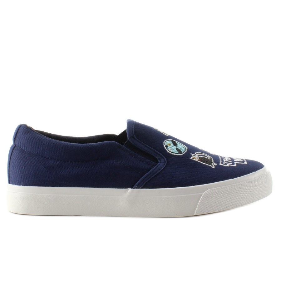 Inna marka Sneakers slip-on com bordado NB102P Dark Blue azul marinho