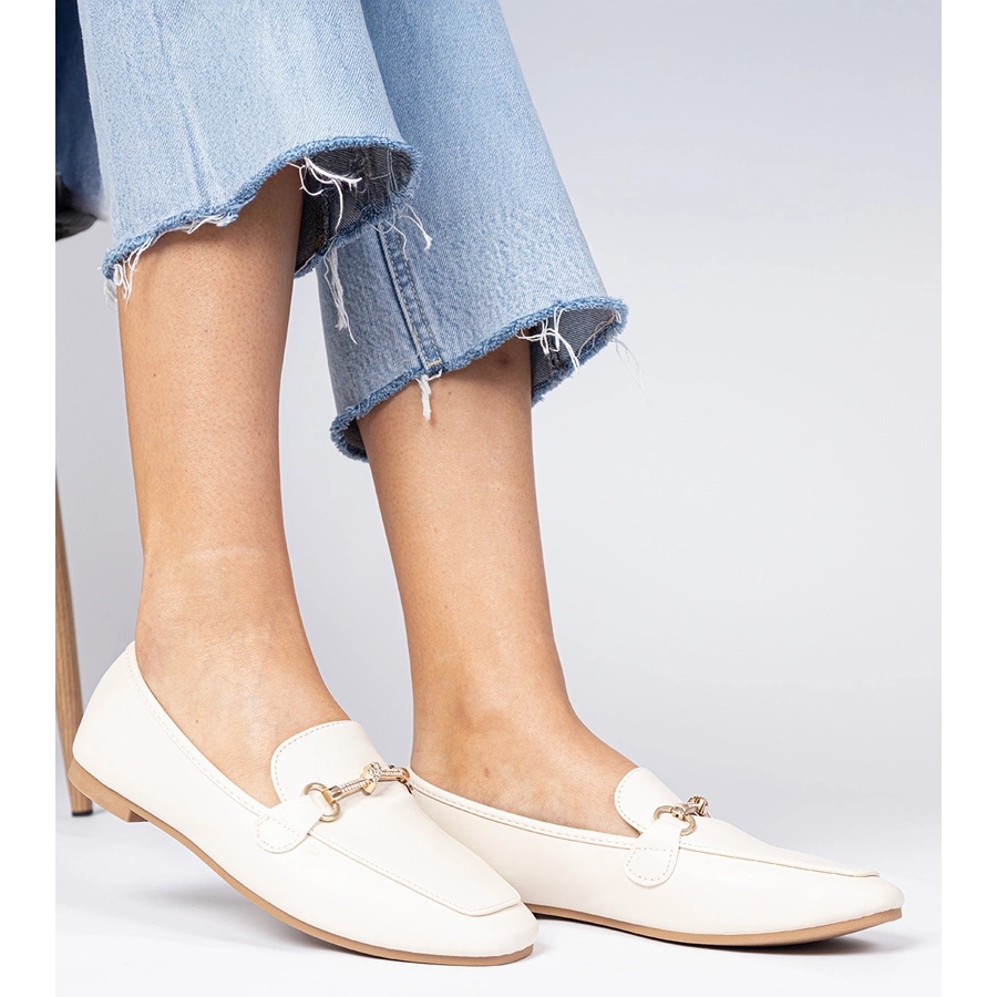 A sola de plástico marrom garante solidez e estabilidade, o que permite movimentos confortáveis o dia todo. A cor bege clássica combinada com sotaque dourada e zircões faz com que esses mocassins um grande complemento para conjuntos casuais e elegantes.