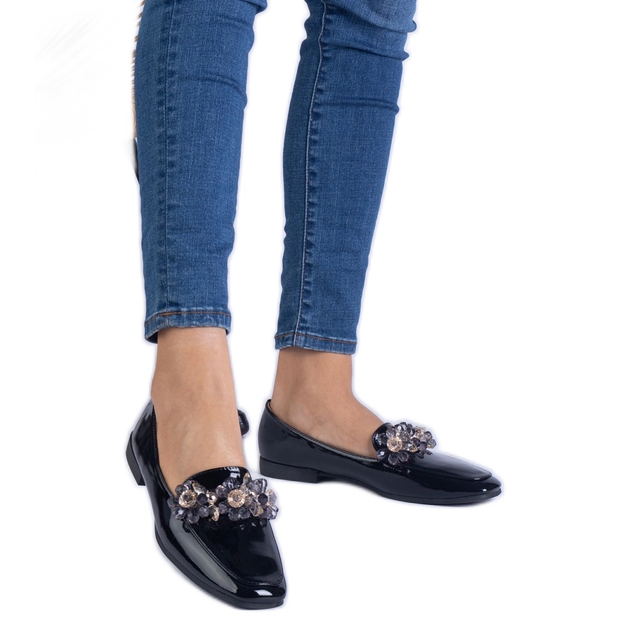 Os mocassins envernizados pretos com cristais são a escolha perfeita para mulheres que desejam combinar elegância com conforto. Sua obra cuidadosa de couro orgânico envernizado de alta qualidade oferece a eles uma aparência única e eficaz que se encaixa perfeitamente nas tendências atuais da moda. Cristais e strass sutis acrescentam brilho, atraindo os olhos e fazendo com que a mulher os usasse se sinta confiante em todas as situações.