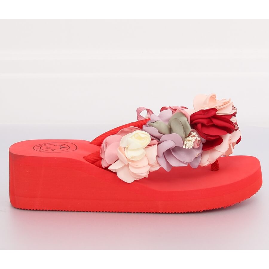 Descubra os exclusivos chinelos vermelhos FM5050 Red com sola de espuma, que combinam perfeitamente conforto e moda! Estes chinelos femininos, com cunha leve de 5 cm de altura, são a escolha perfeita para os dias de verão. Distinguem-se não só pelo conforto de uso, mas também pelos deliciosos detalhes multicoloridos e encantadoras decorações florais que chamam a atenção graças às impressionantes pérolas e zircões.