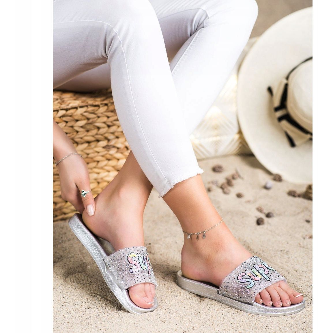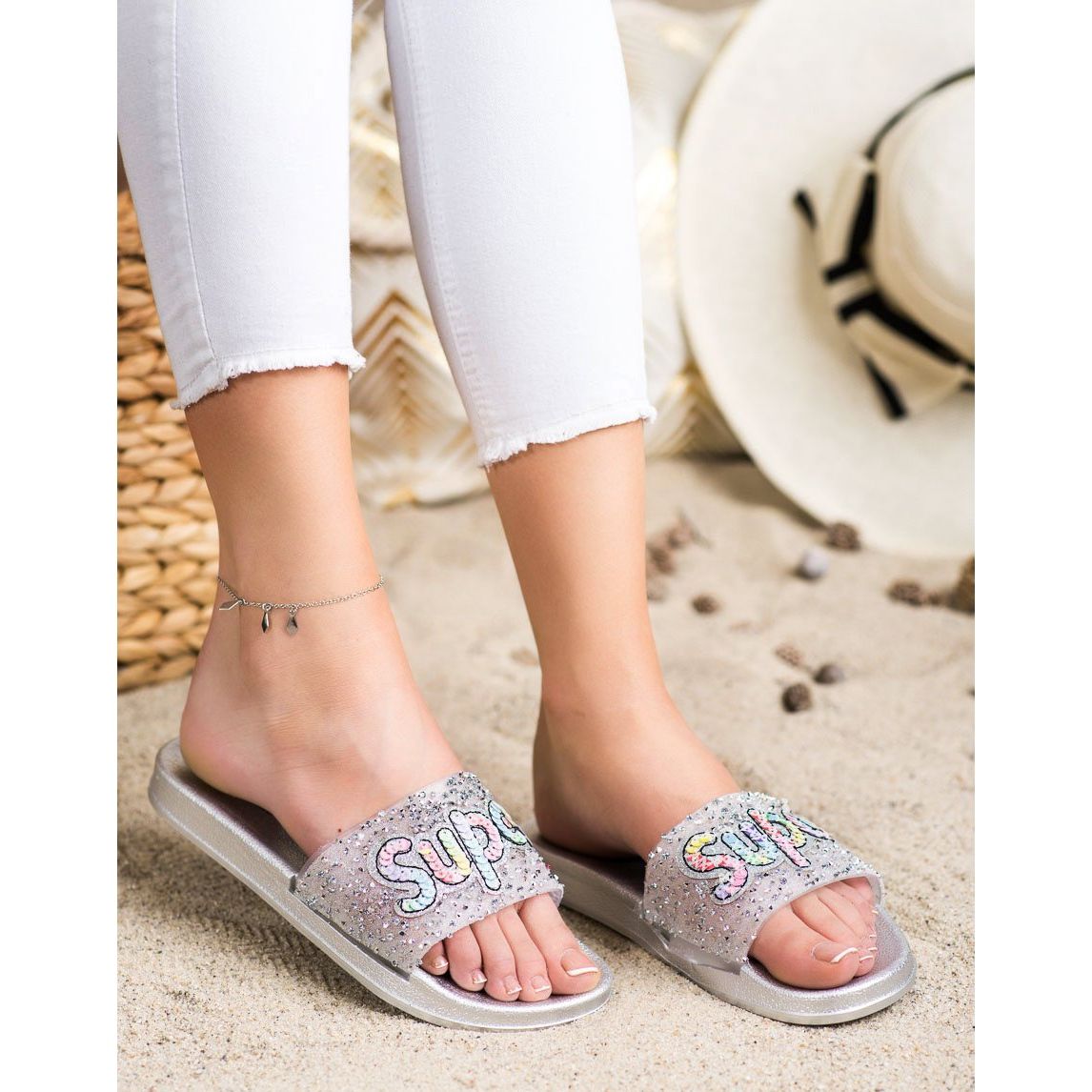 Descubra o último modelo de chinelos SHELOVET que se adaptam perfeitamente às tendências primavera-verão! Os chinelos de lantejoulas prateadas são a escolha perfeita para mulheres que desejam combinar conforto com um visual moderno. Graças ao design slip-on e ao salto aberto, estes chinelos garantem facilidade de calçar e um ajuste perfeito ao pé.